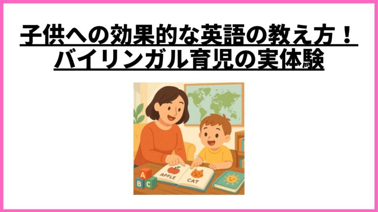「子どもに英語を教えたいけど、どうすればいいの?」親として一度は悩むテーマですよね。私自身も2人の子どもを育てる中で、試行錯誤しながら「楽しく続けられる英語時間」を作ってきました。 この記事では 「子供への効果的な英語の教え方」 をテーマに、家庭でできる工夫や実際に使える方法をまとめます。教育分野の研究や実体験も交えながら、無理なく実践できる内容にしました。 子どもに英語を教える基本姿勢 楽しさを […]