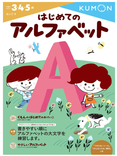 イラストと書き取り中心の構成で、アルファベットを「書く・読む・聞く」の3ステップで学べます。
