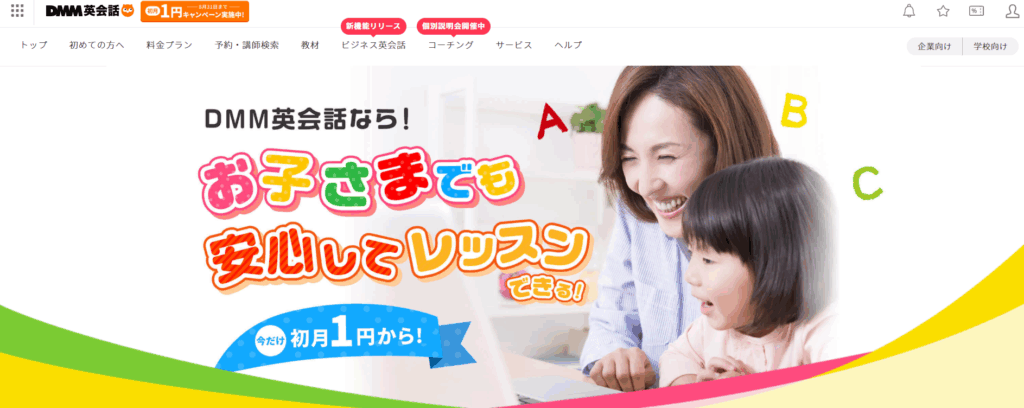 DMM英会話 | 3歳〜 | 世界120カ国の講師 | コスパ抜群・教材豊富 | 約6,500円〜 |