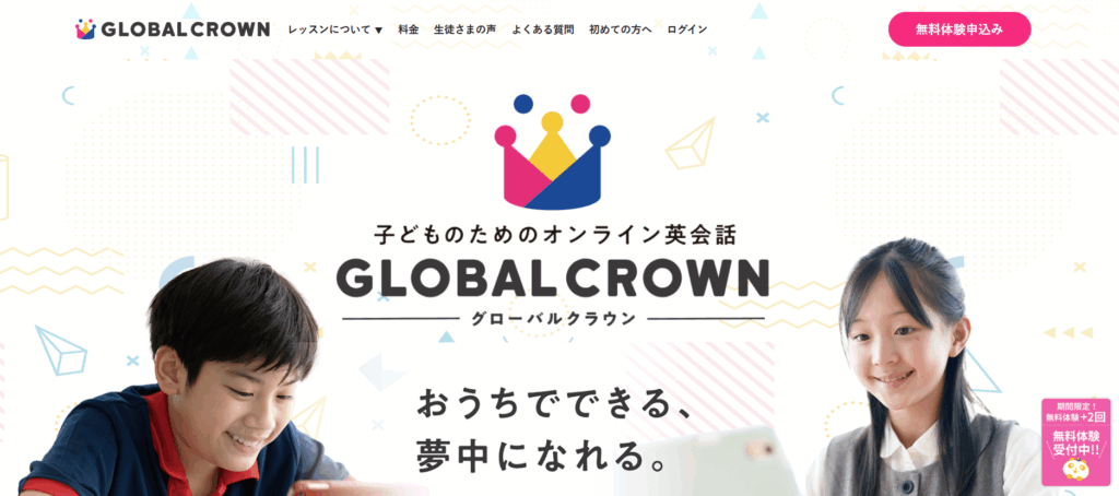グローバルクラウン | 3歳〜中学生 | バイリンガル日本人講師 | 日本語フォローあり | 約9,800円〜 |