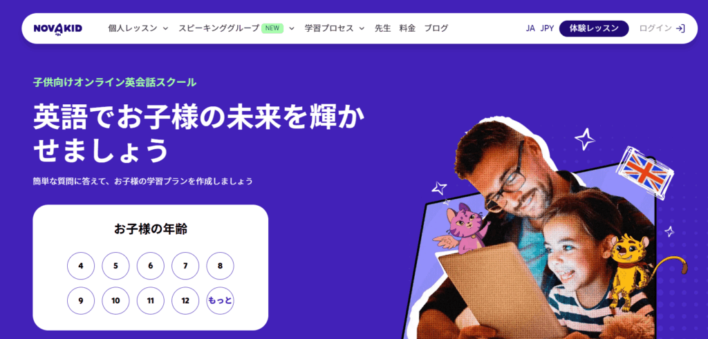 NovaKid | 4歳〜12歳 | ネイティブ/ノンネイティブ | CEFR準拠・ゲーム形式 | 約7,000円〜 |