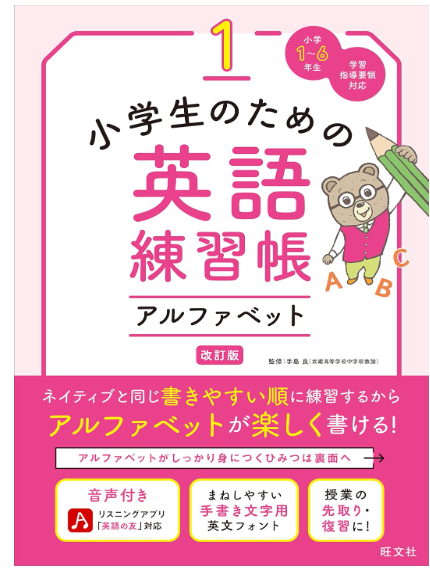 幼児はアルファベットの練習や単語の書き写し、小学生以降は短文作成へと段階的にステップアップできる教材が理想です。