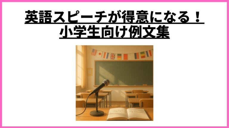 「英語スピーチ」と聞くと少しハードルが高く感じるかもしれません。でも、テーマを身近なものにすれば、小学生でも楽しく英語で話せます。 この記事では、・小学生向けの英語スピーチの作り方・使いやすい例文集(短文・自己紹介・テーマ別)・練習のコツや発音のポイントをわかりやすく解説します。 小学生の英語スピーチとは? 英語スピーチの目的 英語スピーチは「正しく話すこと」よりも、「自分の思いを英語で伝えること […]